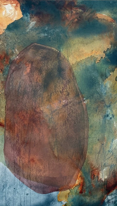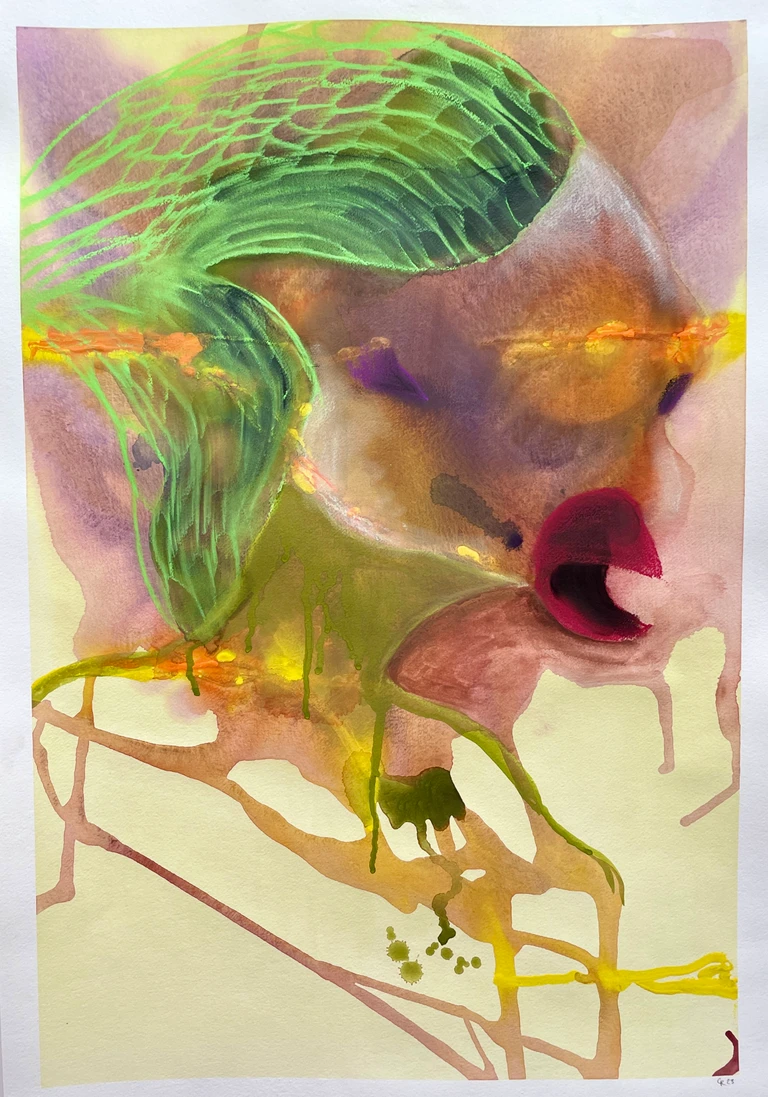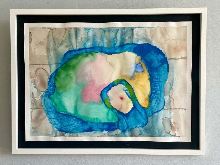 Akvarel og tørpastel på papir