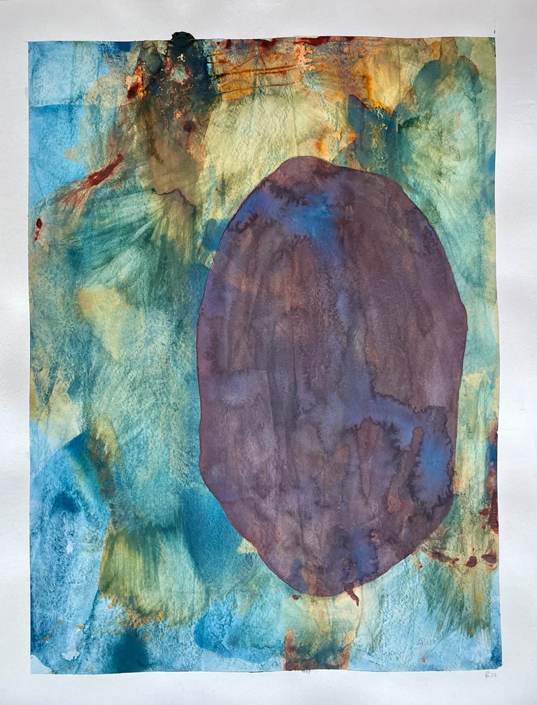 Akvarel og oliepastel på papir