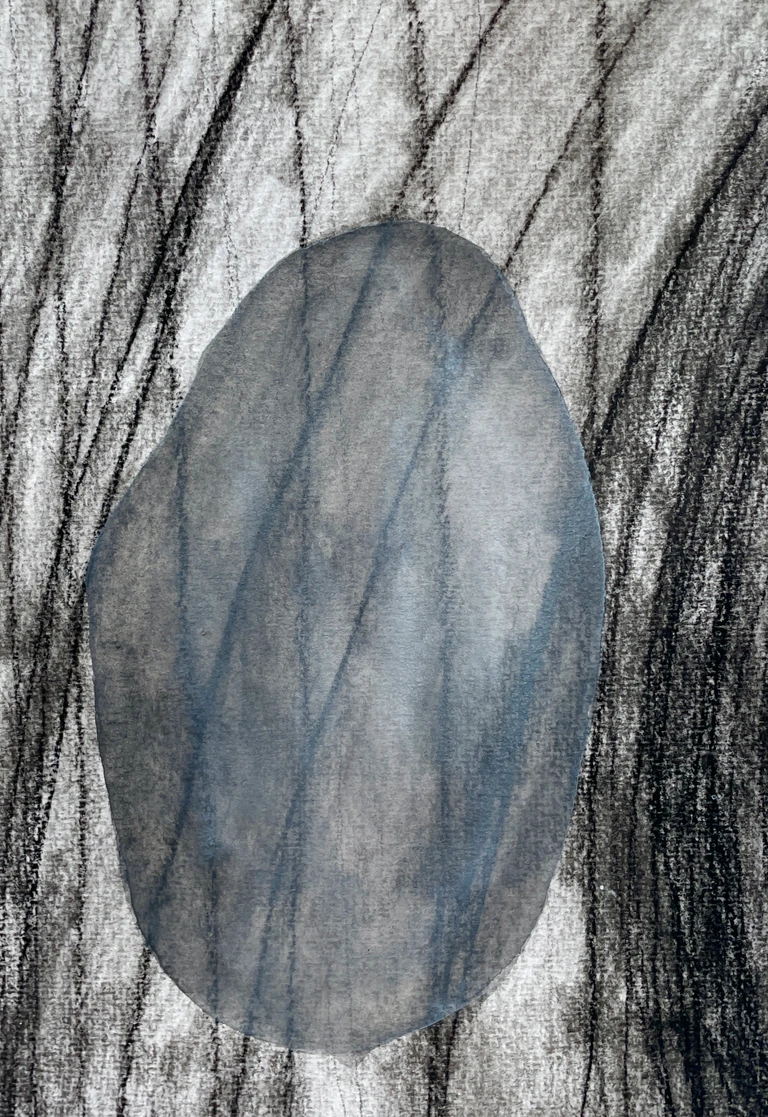 Akvarel og kul på papir