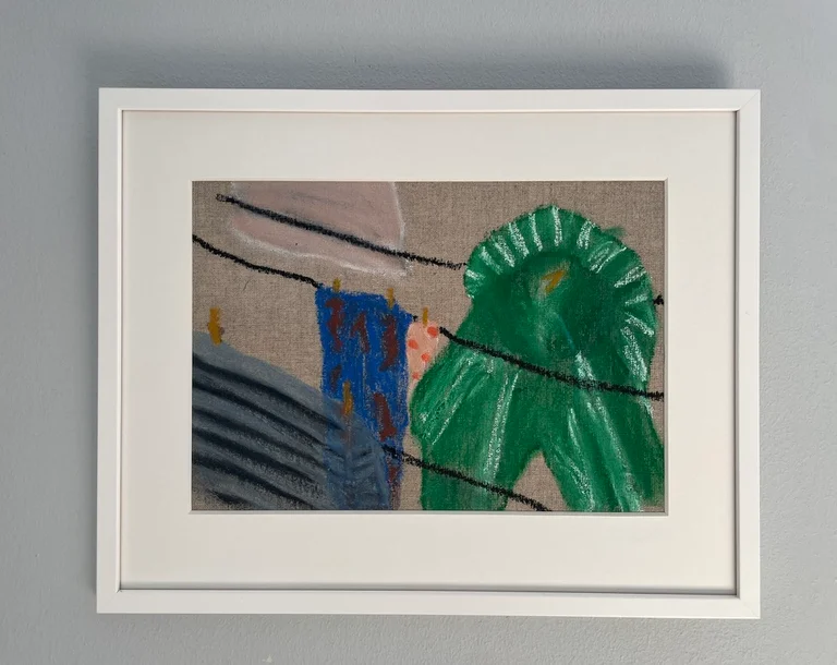 Gouache og tørpastel på papir